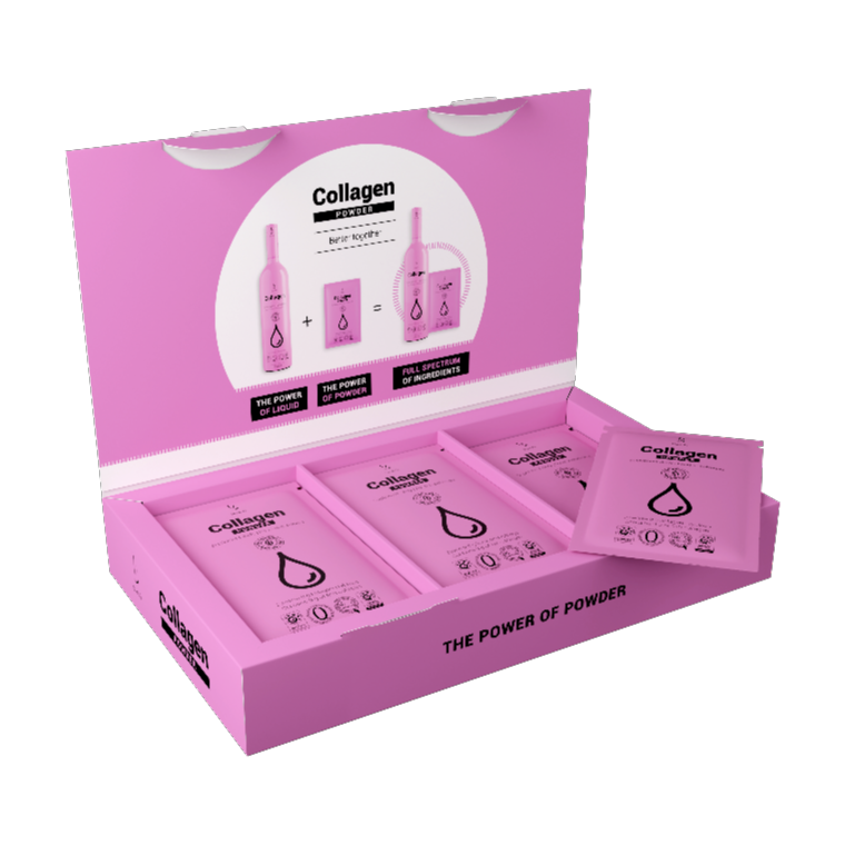 DuoLife Collagen Powder jest suplementem diety w formie sasze- tek o smaku pomarańczowo-żurawinowym, zawierającym wyłącz- nie naturalne składniki. Preparat jest skomponowany z najwyższej jakości surowców. Zawiera bardzo wysoką porcję kolagenu. Dodat- kowo receptura została wzbogacona o ekstrakt z małży nowoze- landzkiej – omułka zilonowargowego, ekstrakt z morszczynu pęche- rzykowatego, naturalne witaminy E i D3 oraz zastrzeżoną formułę pozyskaną z inaktywowanych komórek drożdży Saccharomyces cerevisiae standaryzowaną na zawartość selenu. Unikalna kom- pozycja składników suplementu diety DuoLife Collagen Powder wspiera optymalną kondycję układu kostno-stawowego, skóry, wło- sów i paznokci oraz prawidłową pracę tarczycy.